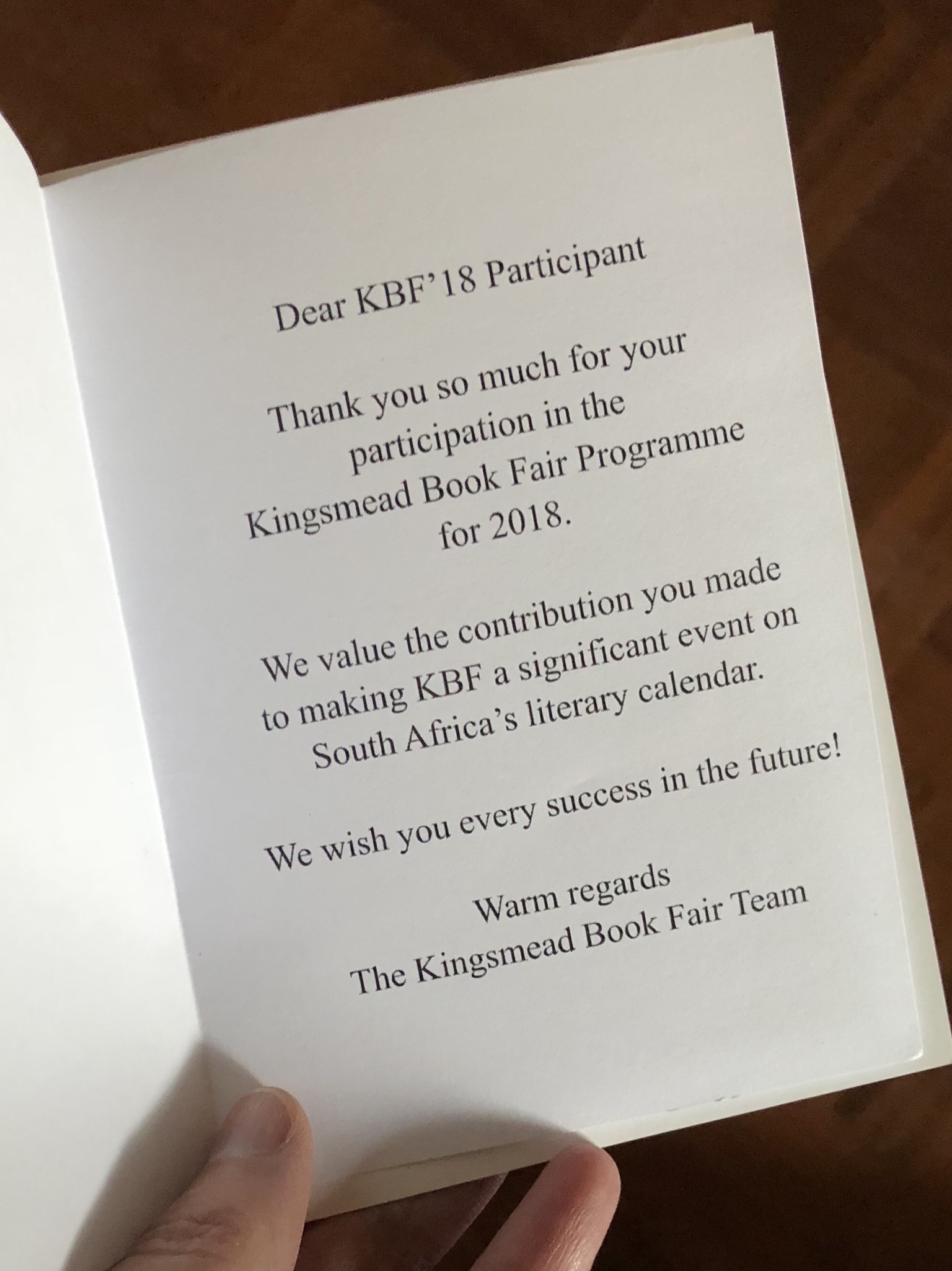 …message following an Author Talk at the Killarney branch of Exclusive Books in Johannesburg, 25 January 2018.